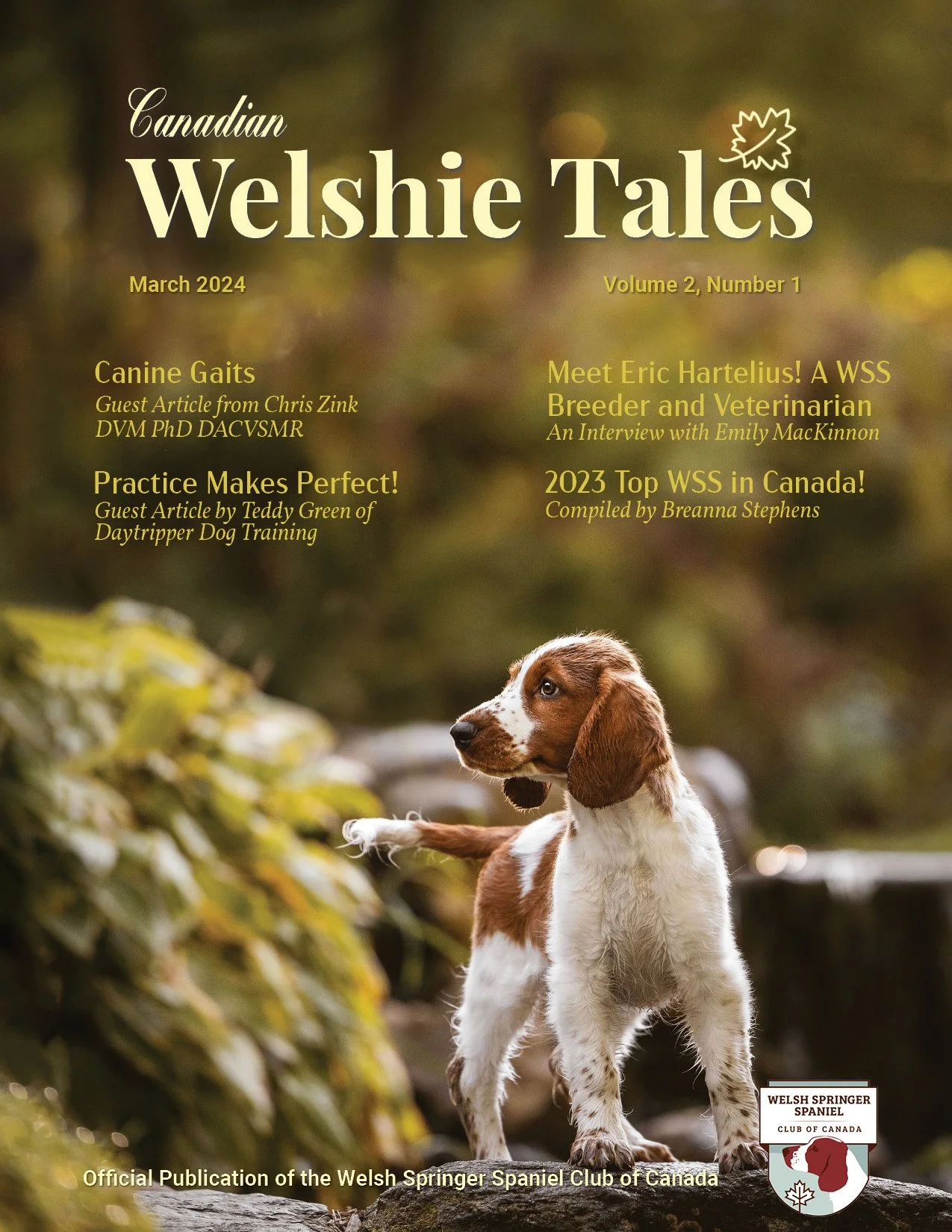 The March 2024 Cover of Canadian Welshie Tales, the Welsh Springer Spaniel Club of Canada’s official publication.
